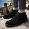 Polacchino in camoscio nero dal design essenziale ed elegante, caratterizzato da linee pulite e finiture curate. La suola robusta garantisce comfort e stabilità, rendendolo ideale per un utilizzo quotidiano raffinato. Un modello versatile, perfetto per completare outfit casual chic e contesti urbani con stile.