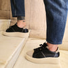 Sneaker POSITANO: eleganza artigianale italiana in pelle di vitello nera con dettagli in camoscio beige. Cuciture laterali realizzate a mano conferiscono carattere autentico, mentre la punta e la linguetta in scamosciato garantiscono comfort raffinato. Suola extra light da 4cm, plantare interno in memory estraibile e fodera in pelle completano una calzatura 100% made in Italy. Lavorazione artigianale che unisce qualità costruttiva e design sofisticato.