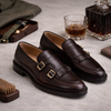 Questo monk strap in pelle testa di moro con doppia fibbia unisce raffinatezza e personalità grazie alle finiture curate e alla nappina frontale. Perfetto sia con pantaloni sartoriali che con un look più casual, è una scarpa versatile pensata per chi cerca stile, qualità e distinzione in ogni dettaglio.